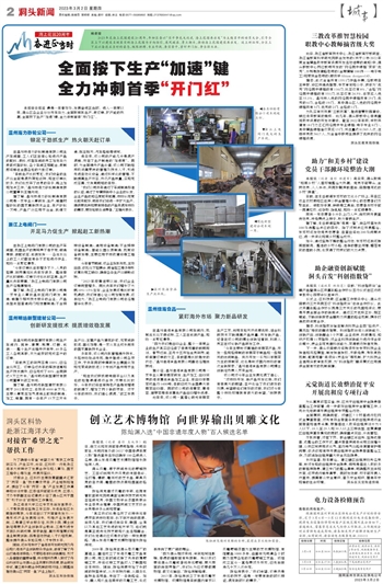 本报综合报道 最是一年春好处,发展奋进正当时。进入一季度以来,洞头区各企业纷纷开足马力,全面掀起抓生产、赶订单、扩产能的热潮,全面按下生产“加速”键,全力冲刺首季“开门红”。
