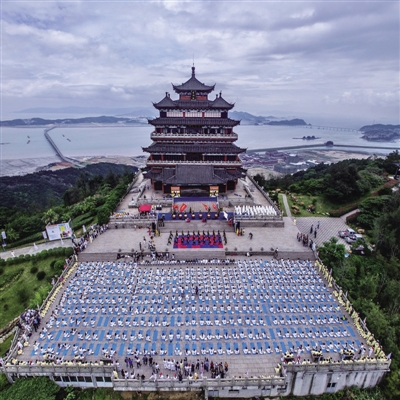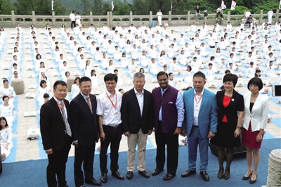 当天上午9点30分,第三届国际瑜伽日开幕式在我区望海楼景区正式启动。